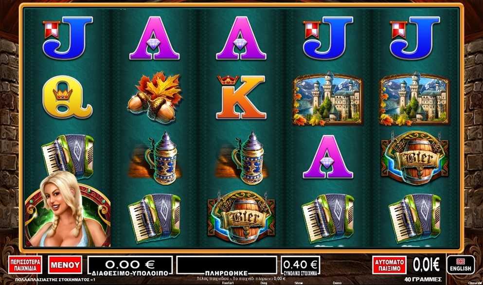 Το “BIERHAUS” είναι ένα παιχνίδι με 5 τροχούς και 40 γραμμές πληρωμής το οποίο πληρώνει από αριστερά προς τα δεξιά μόνο. Οι νικητήριες γραμμές αποτελούνται από διαδοχικά σύμβολα.