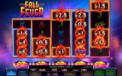 Τα παιχνίδια Bonus Fall Fever παίζονται με τον ίδιο αριθμό γραμμών αποδόσεων και το ίδιο ποντάρισμα ανά γραμμή όπως το παιχνίδι που ξεκίνησε το bonus.