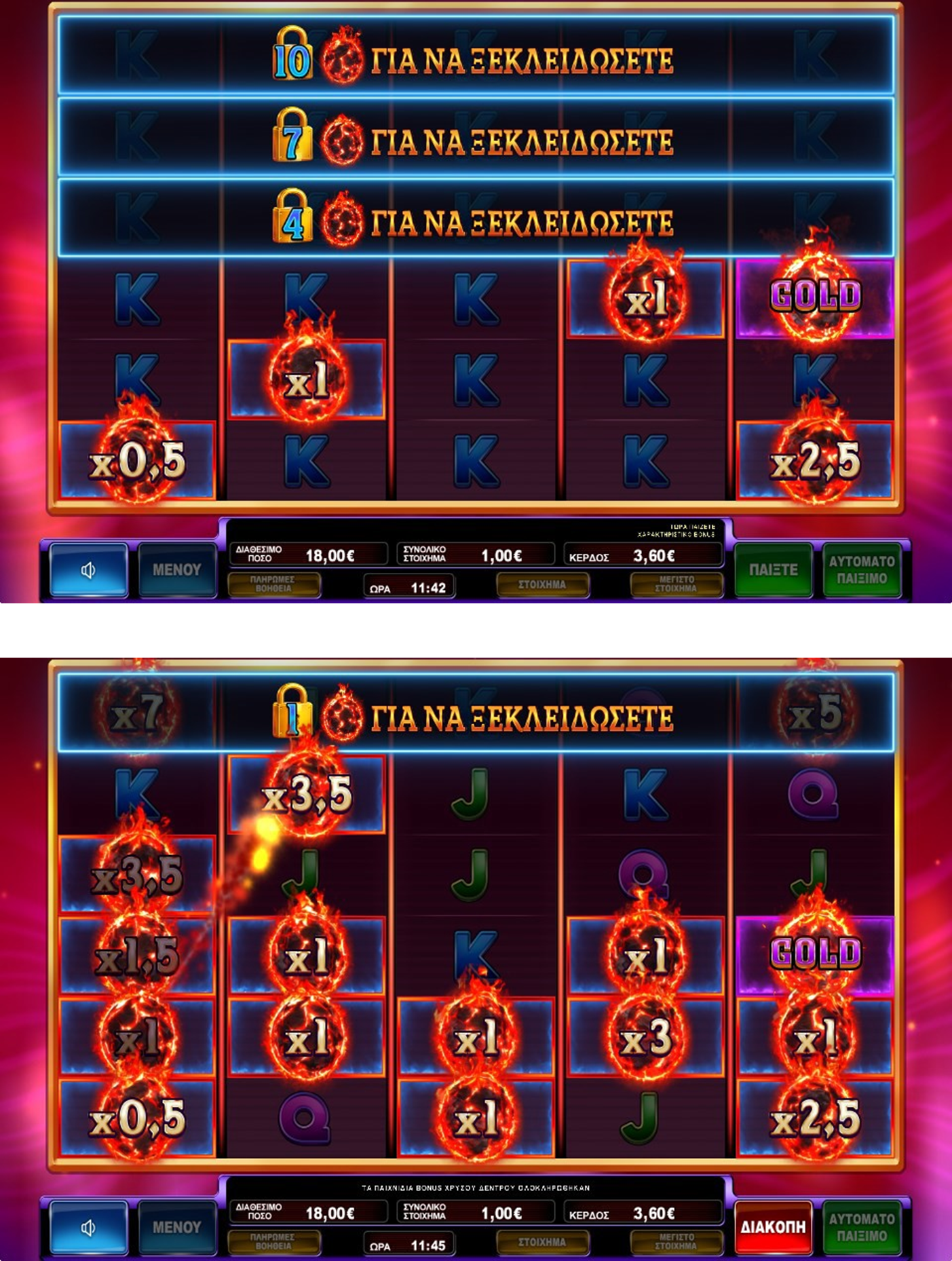 - 12 έως 14 σύμβολα στις σειρές 3 έως 6 ξεκλειδώνουν την σειρά 2.