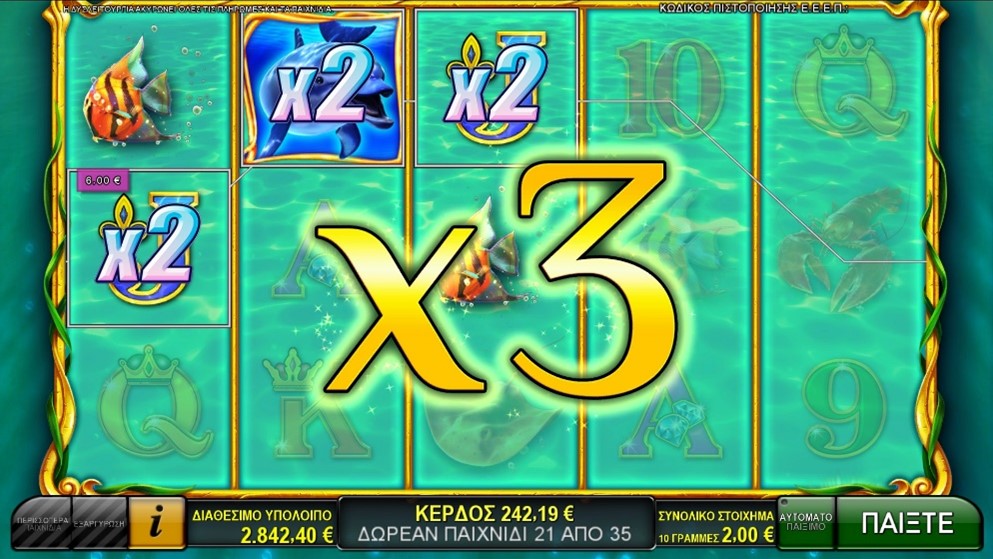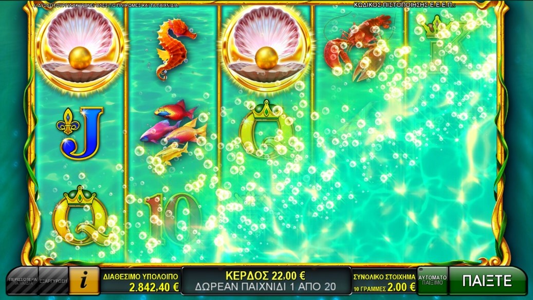 Το «CC Golden Dolphin’s Pearls» είναι ένα παιχνίδι με 5 κυλίνδρους και 10 γραμμές πληρωμής.