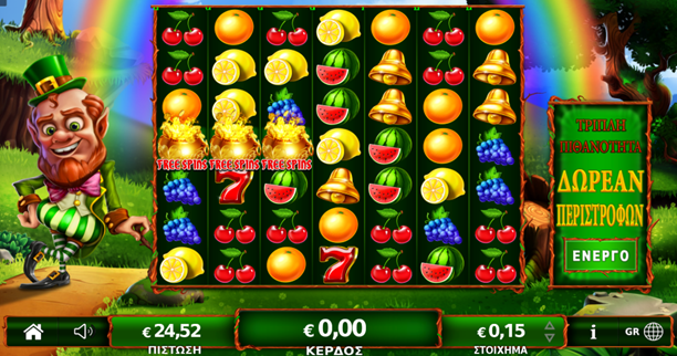 Οι δωρεάν περιστροφές παίζονται με το ίδιο βασικό στοίχημα και τον ίδιο πολλαπλασιαστή βασικού στοιχήματος που τις ενεργοποίησε.