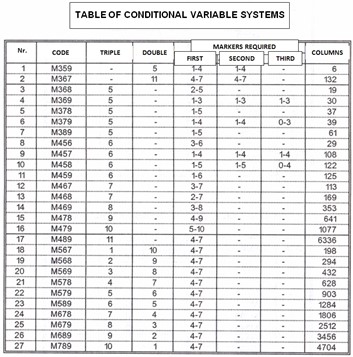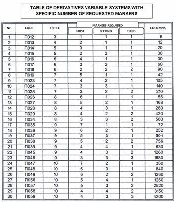 2. Basic Column Variable Systems: systems' conditions refer only to the 1st markers selected and are divided into a specific number or a range of errors covered.