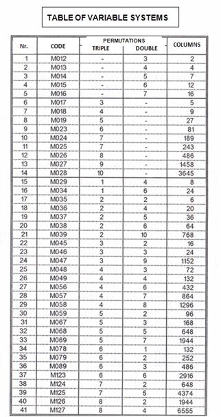 Variable Systems: Systems that, upon correct predictions, may ensure success in the 2nd prize tier (13 correct predictions) and chances of success in the 1st prize tier (14 correct predictions).