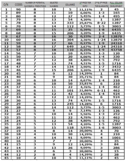 Standard Systems offer the ability to participate in the game with fewer columns & lower cost, compared to those needed for the full system. The success rate, upon correct predictions, is less than 100% (as in full systems), depending on the system you have selected. In total there are 45 standard systems