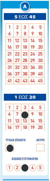 The System Game can boost your winning odds with an increase in number combinations. The standard systems apply only on the 5 out of 45 area. Sets of fives are created, which are then combined with ΤZOKER numbers you have selected in the 20-number field.