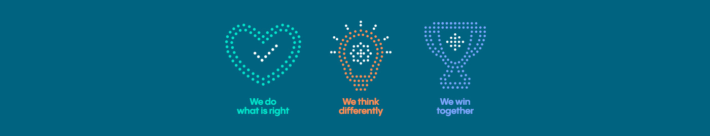 Οι Αξίες μας - We do what is right, We think differently, We win together - είναι αναπόσπαστο κομμάτι της εταιρείας μας καθώς οι Άνθρωποί μας, μέσα από την ενεργή συμμετοχή τους, είναι εκείνοι που τις προσδιόρισαν και τις διαμόρφωσαν. Οι 3 Αξίες μας, λοιπόν, αποτελούν τα θεμέλια της εταιρικής κουλτούρας μας. Βρίσκονται στην καρδιά της εταιρείας μας και καθοδηγούν τη συμπεριφορά μας, τον τρόπο δράσης και συνεργασίας μας, την αλληλεπίδρασή μας με τους πελάτες μας, τους συνεργάτες μας αλλά και την κοινωνία.