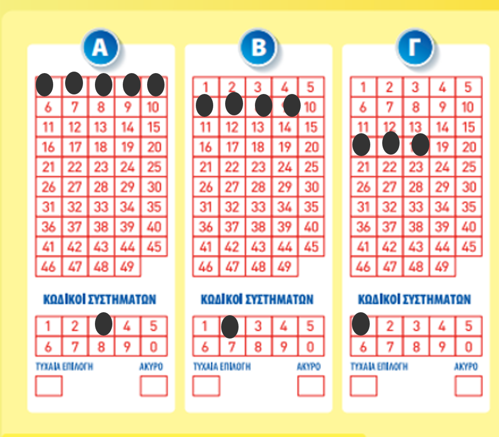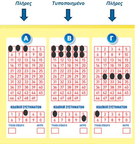 - Σε κάθε περιοχή θα πρέπει να συμπληρώνονται διαφορετικοί αριθμοί από το σύνολο των 49 αριθμών.