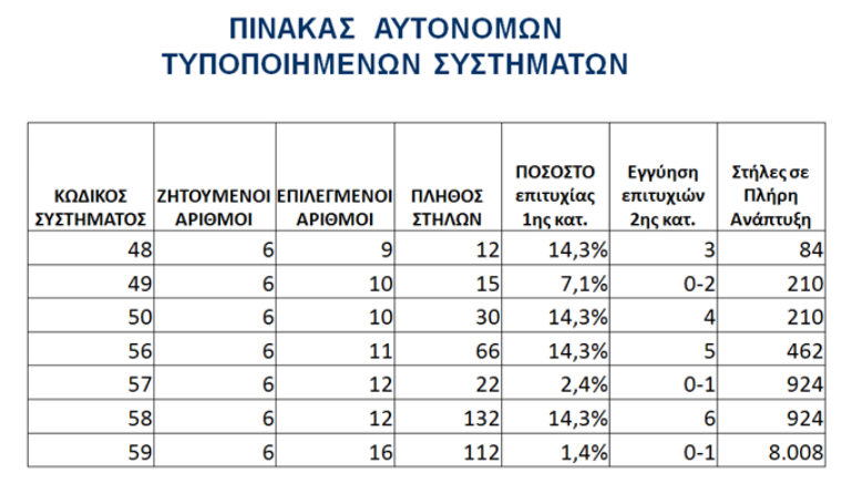 Τα τυποποιημένα συστήματα δεν προσφέρουν τις ίδιες πιθανότητες επιτυχίας με ένα πλήρες σύστημα, ακόμη κι αν έχετε προβλέψετε σωστά τους 6 αριθμούς.