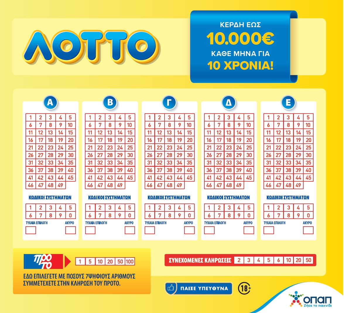 Αποκλειστικά στα καταστήματα ΟΠΑΠ και online στο opaponline.gr ή στην εφαρμογή Opap Online.