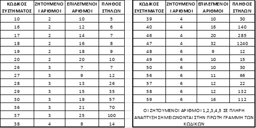Για παράδειγμα αν σημειώσετε το πεδίο «Τυχαία Επιλογή» και επιλέξετε στην περιοχή «Κωδικοί Συστημάτων» το τυποποημένο σύστημα 58 τότε το σύστημα θα δημιουργήσει 132 στήλες(όσες δηλαδή αντιστοιχούν σε αυτό το τυποποιούμενο σύστημα).