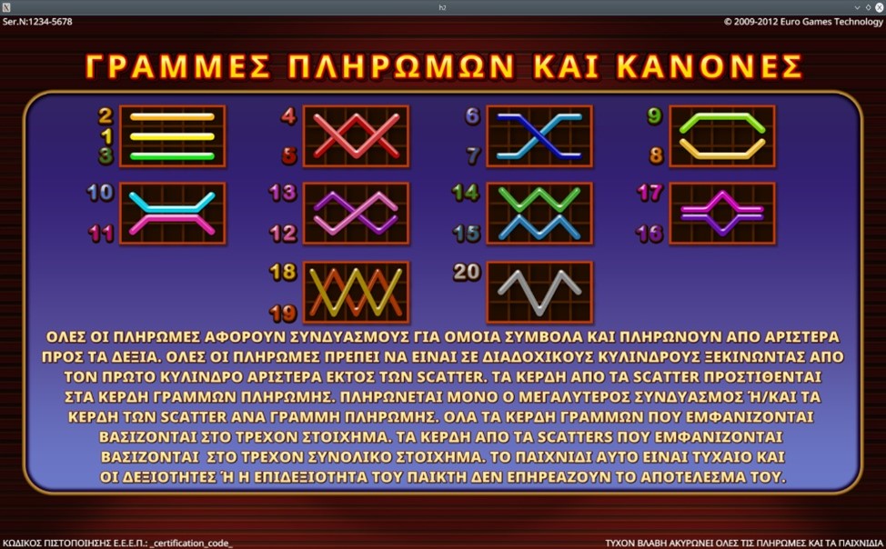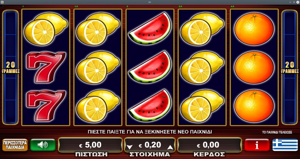 Το παιχνίδι παίζεται σε 20 γραμμές