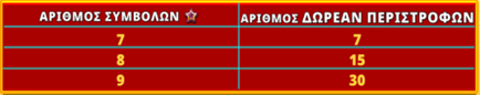 Οι Δωρεάν περιστροφές δεν μπορούν να ενεργοποιηθούν ξανά. Οι Δωρεάν περιστροφές παίζονται με το ίδιο στοίχημα και τις ίδιες γραμμές όπως το παιχνίδι κατά το οποίο ξεκίνησαν. Κατά τη διάρκεια των Δωρεάν περιστροφών χρησιμοποιείται εναλλακτικό σετ κυλίνδρων.