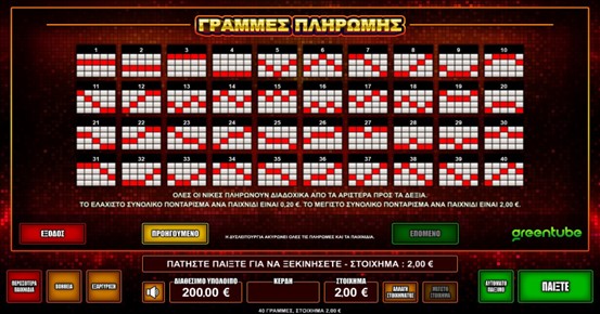 Το παιχνίδι παίζεται σε 40 γραμμές.