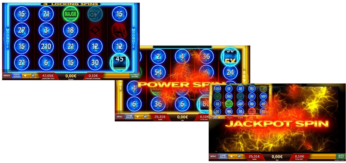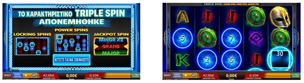 στους κυλίνδρους κατά τη διάρκεια του βασικού παιχνιδιού ενεργοποιεί το μπόνους Triple Spin.