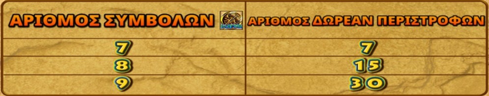 Οι Δωρεάν περιστροφές δεν μπορούν να ενεργοποιηθούν ξανά. Οι Δωρεάν περιστροφές παίζονται με το ίδιο στοίχημα και τις ίδιες γραμμές όπως το παιχνίδι κατά το οποίο ξεκίνησαν. Κατά τη διάρκεια των Δωρεάν περιστροφών χρησιμοποιείται εναλλακτικό σετ κυλίνδρων.