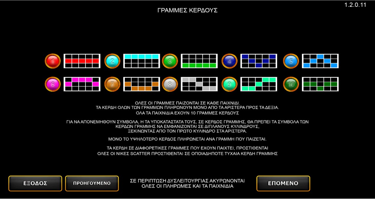 Το παιχνίδι παίζεται σε 10 γραμμές.