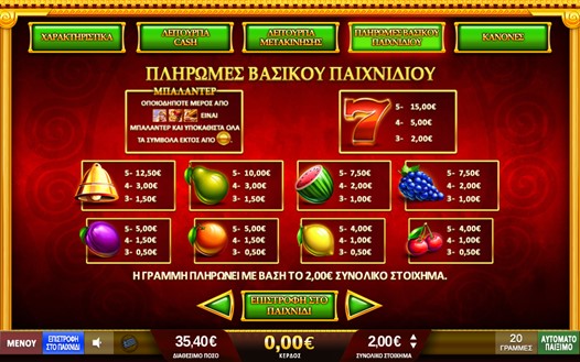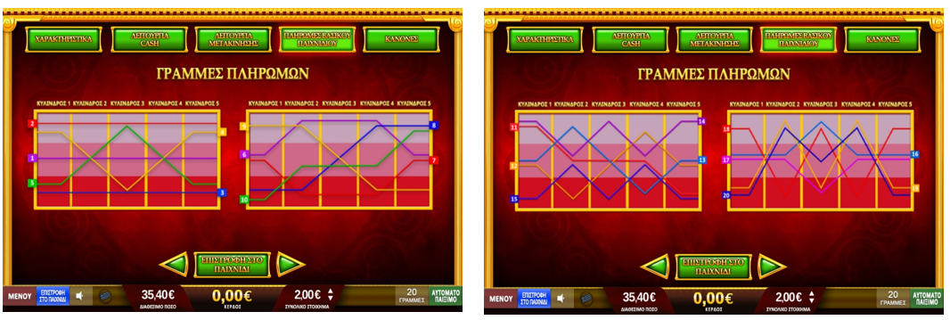 Το παιχνίδι παίζεται σε 20 γραμμές.