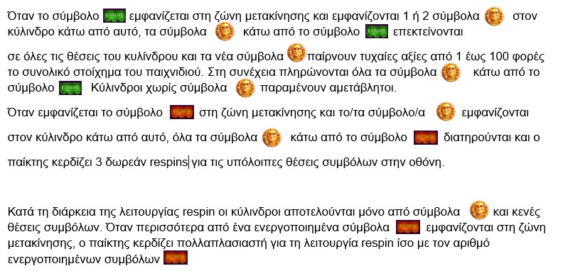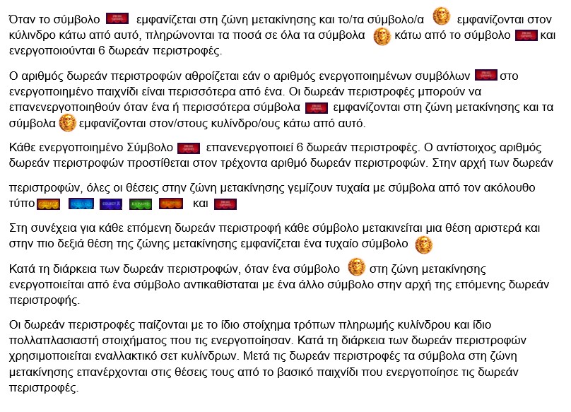 Οι αποδόσεις των συμβόλων αλλάζουν με βάση το ποντάρισμα και είναι διαθέσιμες στις οθόνες του παιγνιομηχανήματος.
