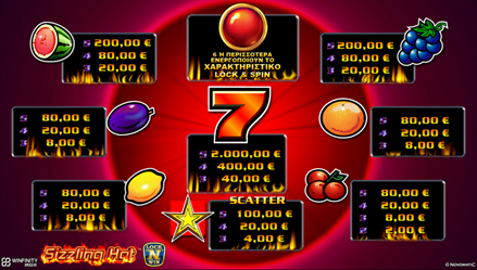 Το CASH CONNECTION SIZZLING HOT είναι ένα παιχνίδι με πέντε κυλίνδρους και πέντε γραμμές πληρωμής. Όλες οι πληρωμές αποδίδονται για όμοιους συνδυασμούς, ξεκινώντας από αριστερά προς τα δεξιά εκτός από τα σύμβολα Scatter. Όλοι οι κερδοφόροι συνδυασμοί αποδίδουν σε διαδοχικούς κυλίνδρους, ξεκινώντας από τον πρώτο κύλινδρο αριστερά. Μόνο το υψηλότερο κέρδος αποδίδεται ανά επιλεγμένη γραμμή.
