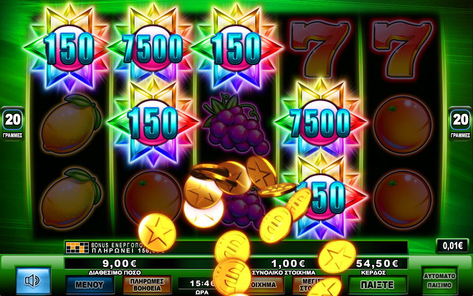 Μία αξία μονάδων από 10-15.000 αντιστοιχούν σε 0,10€- 150,00€ για κάθε σύμβολο Αστεριού που εμφανίζεται. Οι αξίες του συμβόλου Αστεριού δεν πολλαπλασιάζονται Χ2 με το σύμβολο Μπαλαντέρ. Το Bonus Αστεριού είναι το σύνολο όλων των αξιών του συμβόλου Αστεριού που εμφανίζονται στη οθόνη.