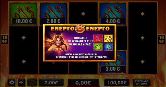 Κατά τη διάρκεια του χαρακτηριστικού μπόνους κάθε σύμβολο Devil πληρώνει τις