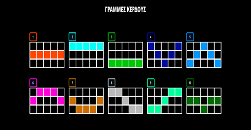 Το παιχνίδι παίζεται με 10 γραμμές πληρωμής Το ελάχιστο στοίχημα ανά παιχνίδι είναι 0,10€ Το μέγιστο στοίχημα ανά παιχνίδι είναι 2,00€