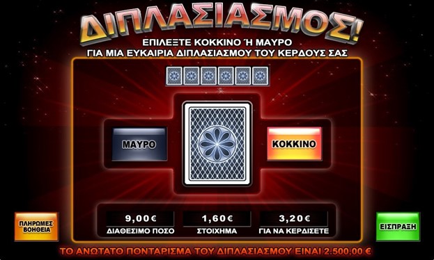 Τα κέρδη των παιχνιδιών Bonus δεν μπορούν να διπλασιασθούν. Το όριο πονταρίσματος στο διπλασιασμό είναι 2.500,00€.