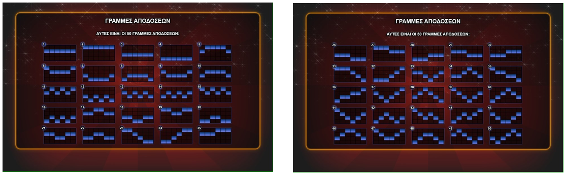 Το παιχνίδι παίζεται σε 50 γραμμές.