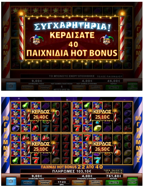 Τα Hot Games δεν είναι διαθέσιμα αν τα κέρδη στο βασικό παιχνίδι φτάσουν τα 10.000,00€.