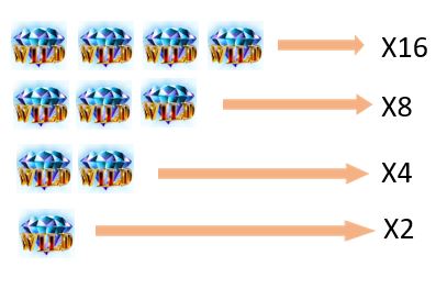 Πατώντας το πλήκτρο διπλασιασμού εμφανίζεται μια νέα οθόνη, οπού ο παίκτης μπορεί να επιλέξει ανάμεσα σε μια κόκκινη ή μια μαύρη κάρτα. Όταν ο παίκτης επιλέξει ένα από τα χρώματα, το παιχνίδι του διπλασιασμού αποκαλύπτει μια κάρτα και δείχνει το αποτέλεσμα του γύρου του παιχνιδιού. Αν αυτή η κάρτα έχει το χρώμα που επιλέχθηκε, το κέρδος διπλασιάζεται. Αν όμως η κάρτα δεν έχει το χρώμα που επιλέχθηκε, το συνολικό κέρδος χάνεται. Η πιθανότητα κέρδους είναι 50%.