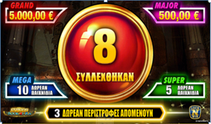 Κατά τη διάρκεια των δωρεάν παιχνιδιών 3 ή περισσότερα σύμβολα