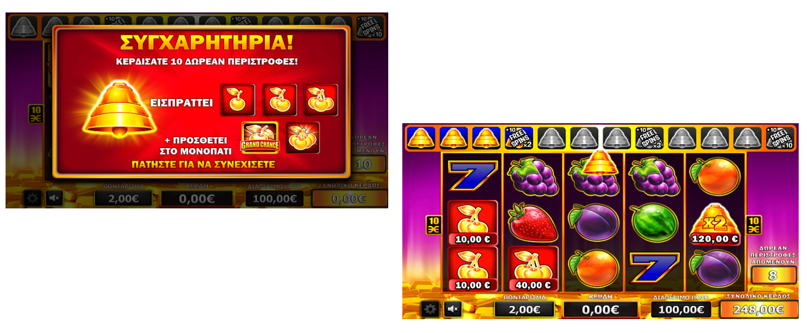 περιστροφές και η αύξηση πολλαπλασιαστή απονέμονται μόνο αφού ολοκληρωθεί το τρέχον σετ περιστροφών.