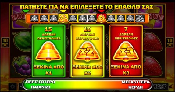 H επιλογή των παιχνιδιών μπόνους περιλαμβάνει: