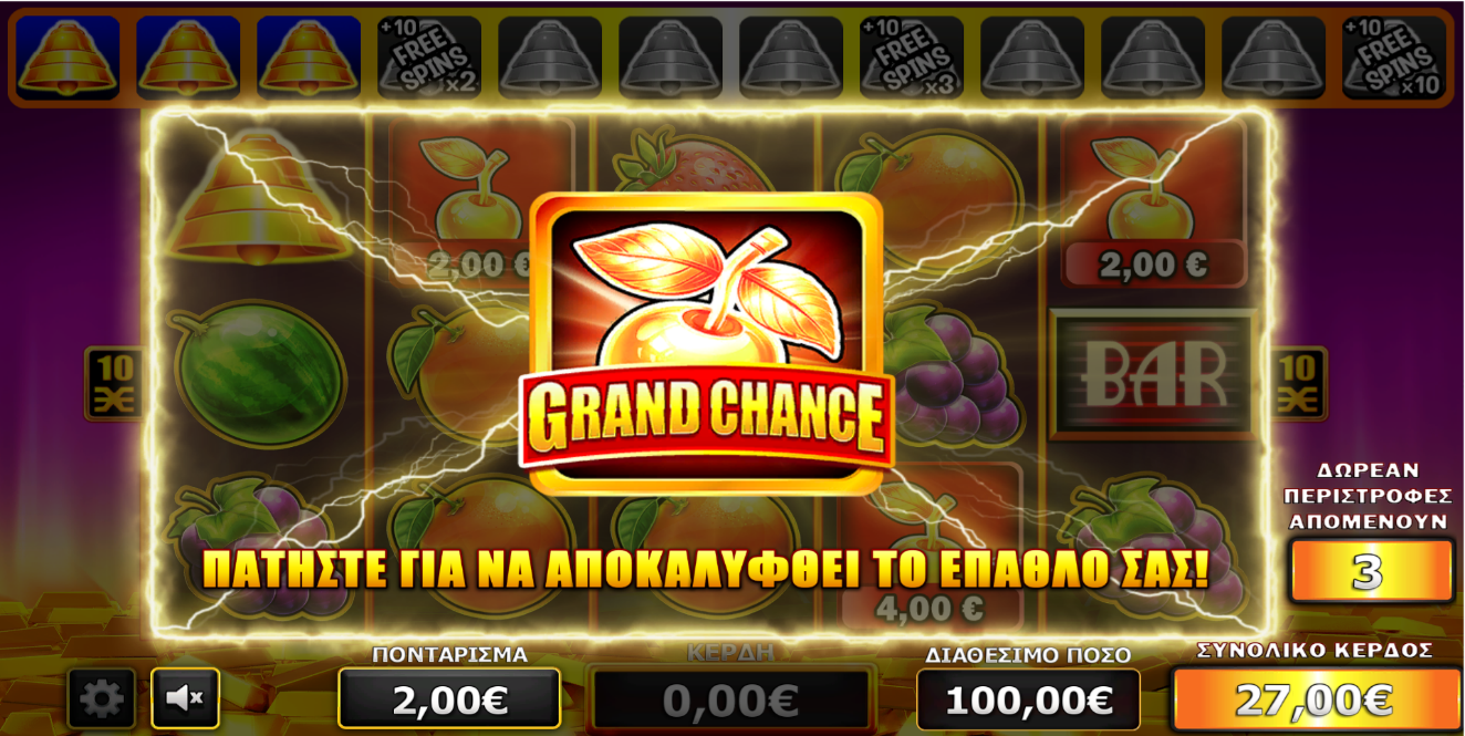 Η αξία του επάθλου θα παρουσιαστεί και θα εισπραχθεί και στη συνέχεια θα εφαρμοστεί ο τρέχων πολλαπλασιαστής. Το έπαθλο Grand μπορεί να απονεμηθεί μόνο μέσω της αποκάλυψης του Grand Chance.