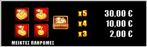 Οι πιθανές αξίες επάθλου για τα σύμβολα Cash είναι MINI=30X, MINOR=50X, MAJOR=100X και GRAND=205X του ενεργού πονταρίσματος.
