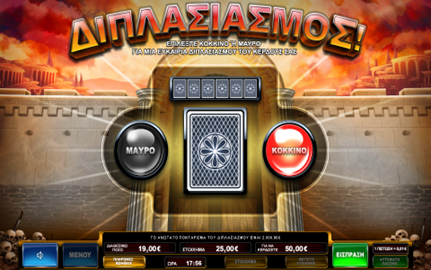 Πατώντας το πλήκτρο διπλασιασμού εμφανίζεται μια νέα οθόνη, οπού ο πελάτης μπορεί να επιλέξει ανάμεσα σε μια κόκκινη ή μια μαύρη κάρτα. Όταν ο πελάτης επιλέξει ένα από τα χρώματα, το παιχνίδι του διπλασιασμού αποκαλύπτει μια κάρτα και δείχνει το αποτέλεσμα του γύρου του παιχνιδιού. Αν αυτή η κάρτα έχει το χρώμα που επιλέχθηκε, το κέρδος διπλασιάζεται. Αν όμως η κάρτα δεν έχει το χρώμα που επιλέχθηκε, το συνολικό κέρδος χάνεται. Η πιθανότητα κέρδους είναι 50%.