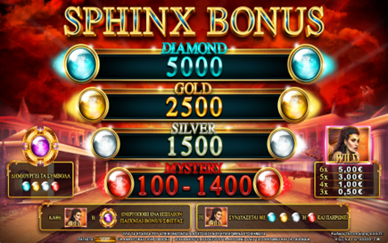 Τα παιχνίδια Bonus Σφίγγας αποτελούνται από μια επιπλέον περιστροφή όπου ενεργά σύμβολα προσγειώνονται και κλειδώνουν στην θέση τους για τον υπόλοιπο γύρο του παιχνιδιού Bonus Σφίγγας. Κατά τη διάρκεια των παιχνιδιών Bonus Σφίγγας, είναι ενεργά μόνο τα Μπαλαντέρ, Μενταγιόν, Διαμάντια, Χρυσά, Ασημένια και σύμβολα Μυστηρίου. Ο πελάτης μπορεί να κερδίσει πολλαπλά Διαμάντια, Χρυσά, Ασημένια και σύμβολα Μυστηρίου κατά την διάρκεια του παιχνιδιού Bonus Σφίγγας.