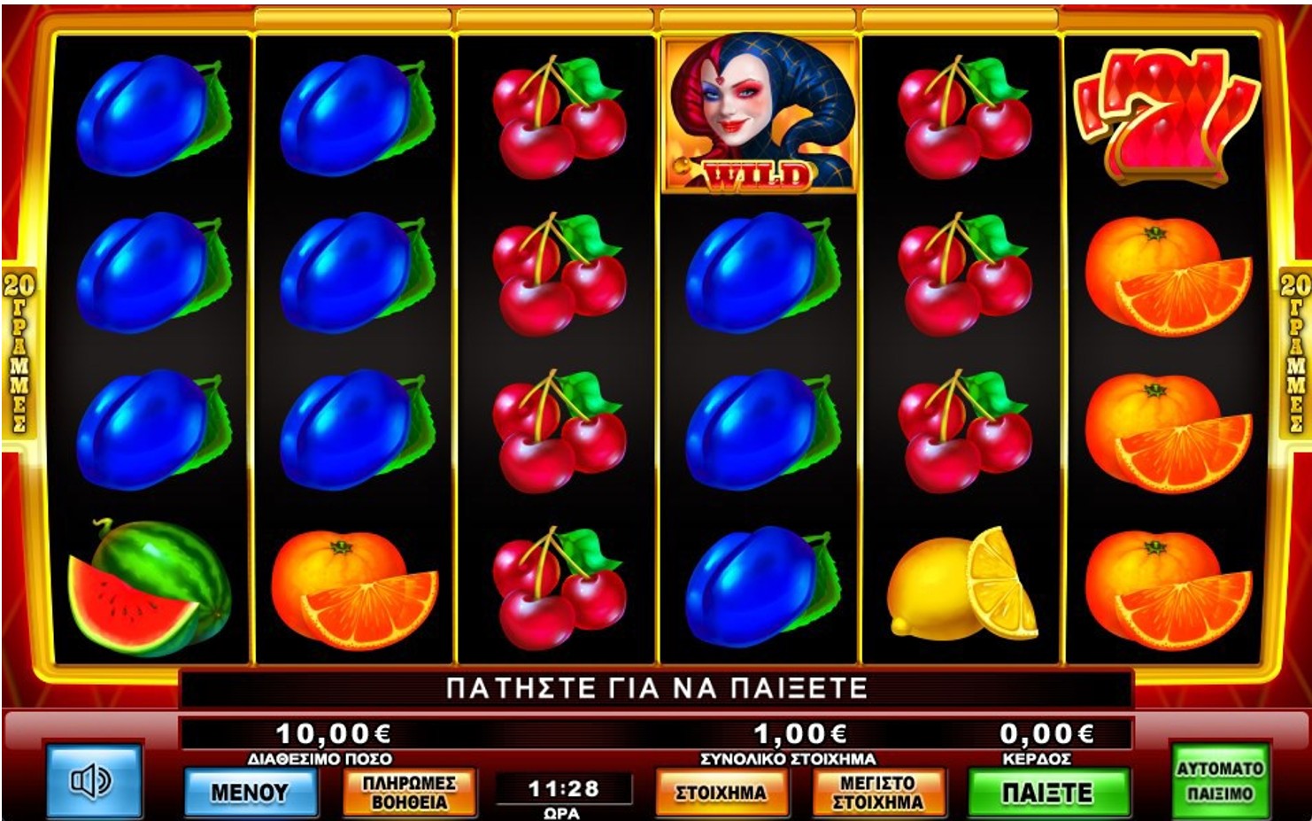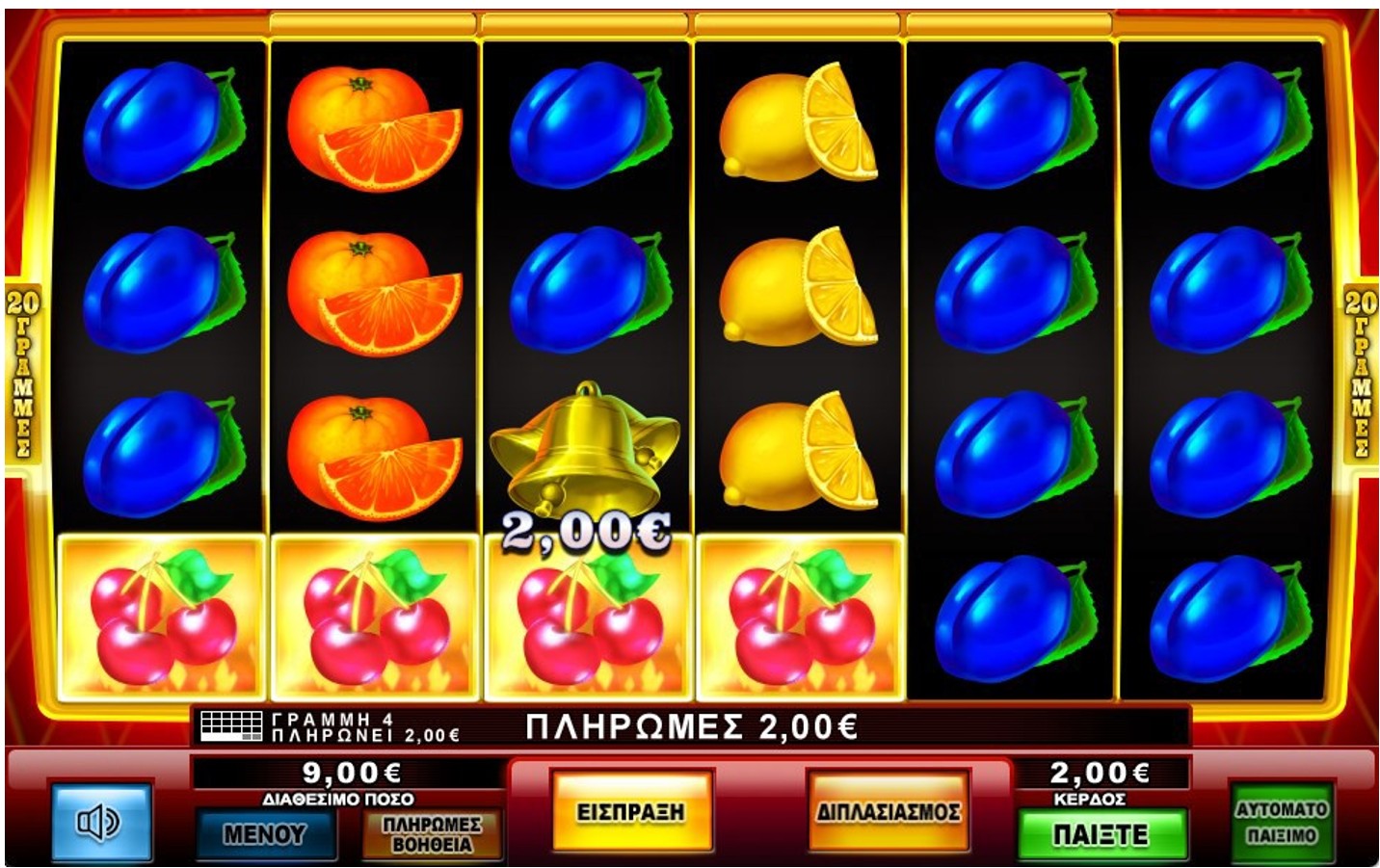 Το παιχνίδι παίζεται σε 20 γραμμές πληρωμής