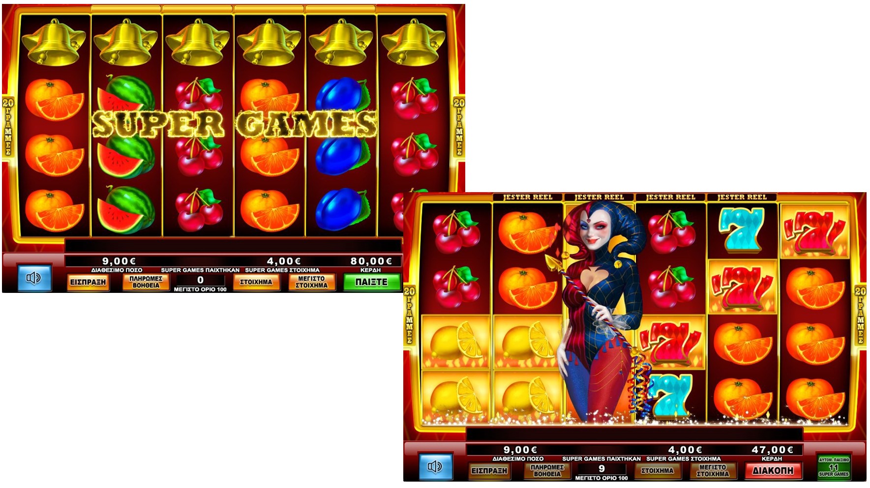 μπορεί να ενεργοποιήσει τα Super Games. Τα Super Games παίζονται στη βασικό οθόνη.