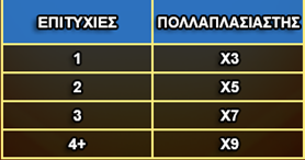 Ο πολλαπλασιαστής αυξάνεται περαιτέρω με τις επόμενες επιτυχίες.