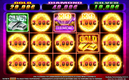 Τα Διαμάντια, Χρυσά και Ασημένια σύμβολα είναι διάσπαρτα, πληρώνουν ποσά ανάλογα με τον πίνακα πληρωμών και εμφανίζονται μόνο στα παιχνίδια Bonus.
