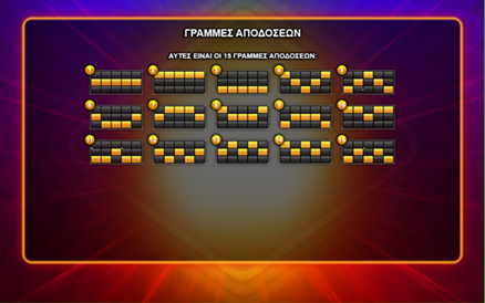 Το παιχνίδι παίζεται σε 15 γραμμές.