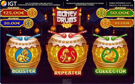 Το  Money drumsείναι ένα παιχνίδι με 5 κυλίνδρους  και 30 γραμμές πληρωμής. Όλες οι πληρωμές αποδίδονται για όμοιους συνδυασμούς, ξεκινώντας από αριστερά προς τα δεξιά .Τα σύμβολα μιας νικηφόρας γραμμής πρέπει να εμφανίζονται σε διαδοχικούς κυλίνδρους, και να ξεκινούν από τον πρώτο κύλινδρο αριστερά. Μόνο το μεγαλύτερο κέρδος πληρώνεται ανά γραμμή πονταρίσματος.