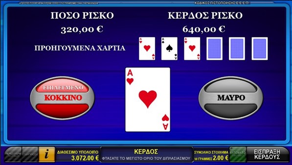Εάν εμφανιστεί το χρώμα που επιλέξατε στην στοίβα τότε διπλασιάζεται το ποσό που ρισκάρατε.