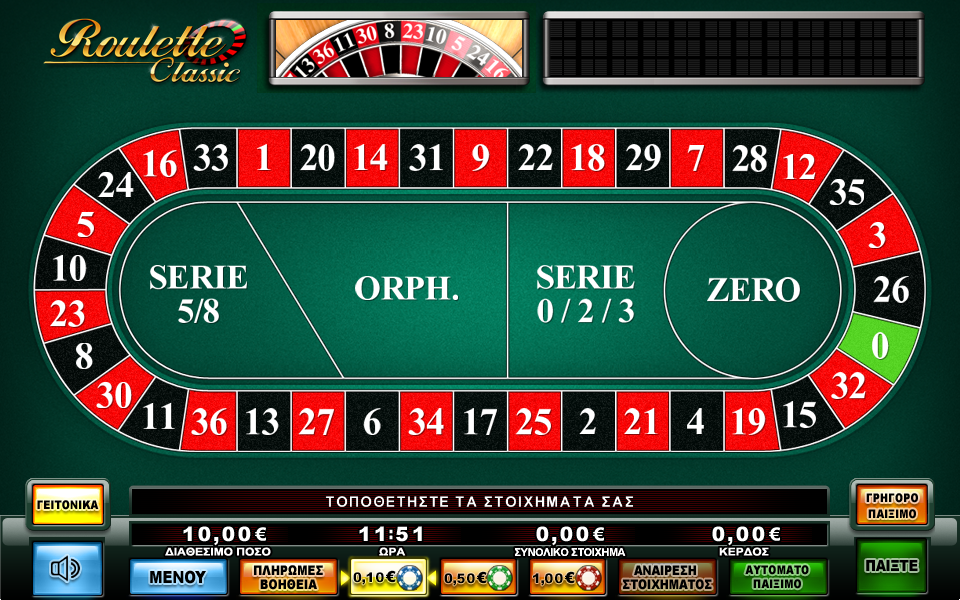 Το παιχνίδι Roulette Classic περιέχει 37 αριθμούς από το “0” μέχρι το “36”. Η διάταξη των στοιχημάτων περιλαμβάνει κάθε αριθμό, τα εξωτερικά στοιχήματα καθώς και συνδυασμούς αριθμών. Τα στοιχήματα μπορούν να τοποθετηθούν είτε με προβολή στο τραπέζι της Ρουλέτας είτε στην πίστα στοιχηματισμού. Ο παίκτης στοιχηματίζει επιλέγοντας μια μάρκα και πιέζοντας το σημείο στο τραπέζι που θα ήθελε να βάλει το στοίχημα. Ο τροχός της Ρουλέτας αρχίζει να γυρίζει όταν ο παίκτης πατήσει το κουμπί παίξτε. Ο τροχός της Ρουλέτας γυρίζει και η μπίλια θα πέσει σε μια από τις θέσεις στον τροχό.