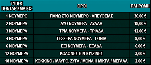 Κόκκινο / Μαύρο, Ζυγά / Μονά, Μικρά/ Μεγάλα: