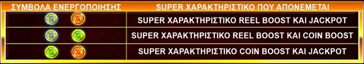 Εάν ένα Super χαρακτηριστικό ενεργοποιηθεί, κερδίζετε 8 δωρεάν παιχνίδια.