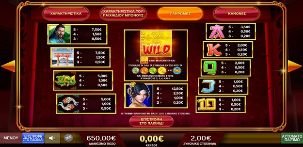 Οι αποδόσεις των συμβόλων αλλάζουν με βάση το ποντάρισμα και είναι διαθέσιμες στις οθόνες του παιγνιομηχανήματος.