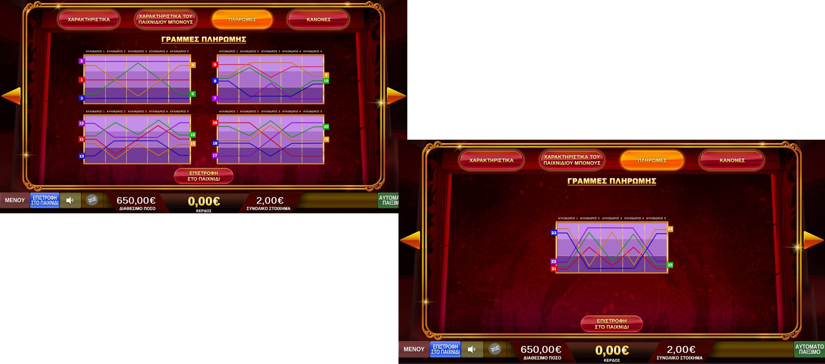 Το παιχνίδι παίζεται σε 25 γραμμές.