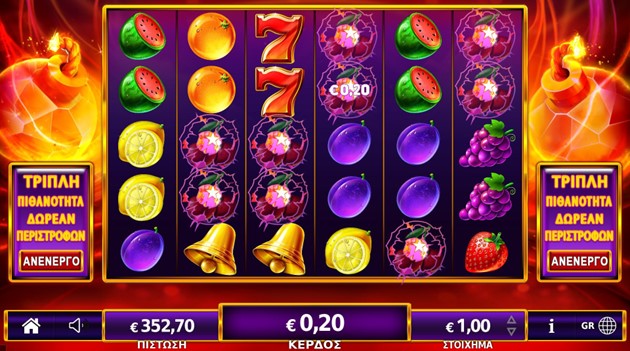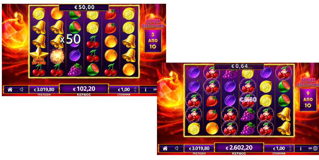 Οι αποδόσεις των συμβόλων αλλάζουν με βάση το ποντάρισμα και είναι διαθέσιμες στις οθόνες του παιγνιομηχανήματος.